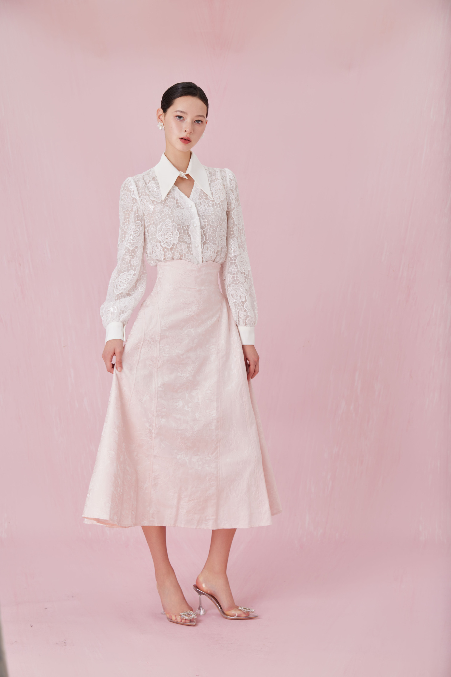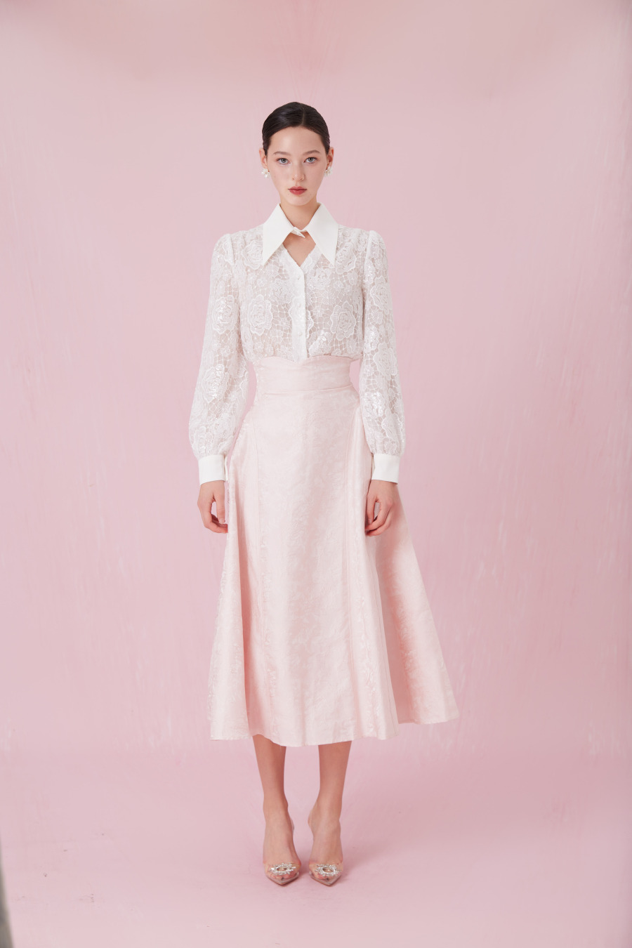 Chanele Pink Rose Jacquard A-Line Skirt